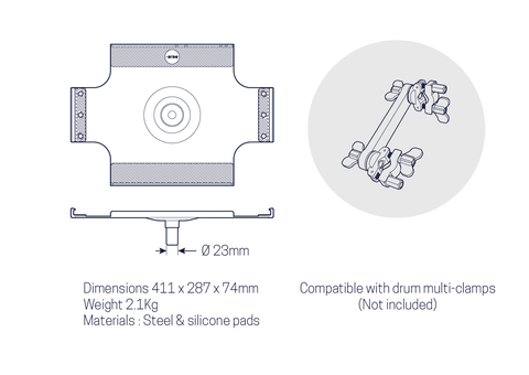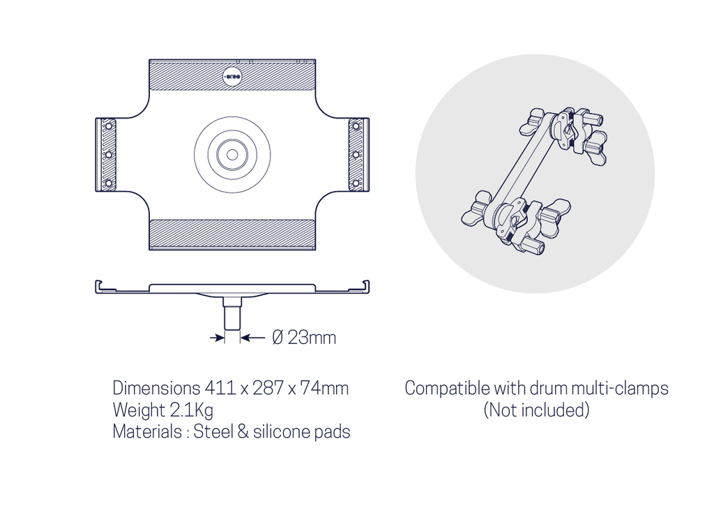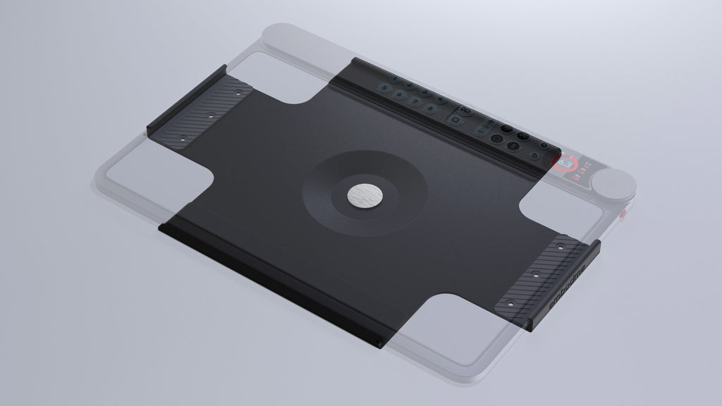 Play live on stage with your Erae 2. The mounting plate fits on multi-clamps. Installing the Erae 2 on the mounting plate is very easy and tool-free, taking just a few seconds. You can position the product from flat to fully vertical. Silicone clips and the highly rigid plate protect your instrument during shows. The Hard Cover does not fit when the ERAE is mounted on this plate.